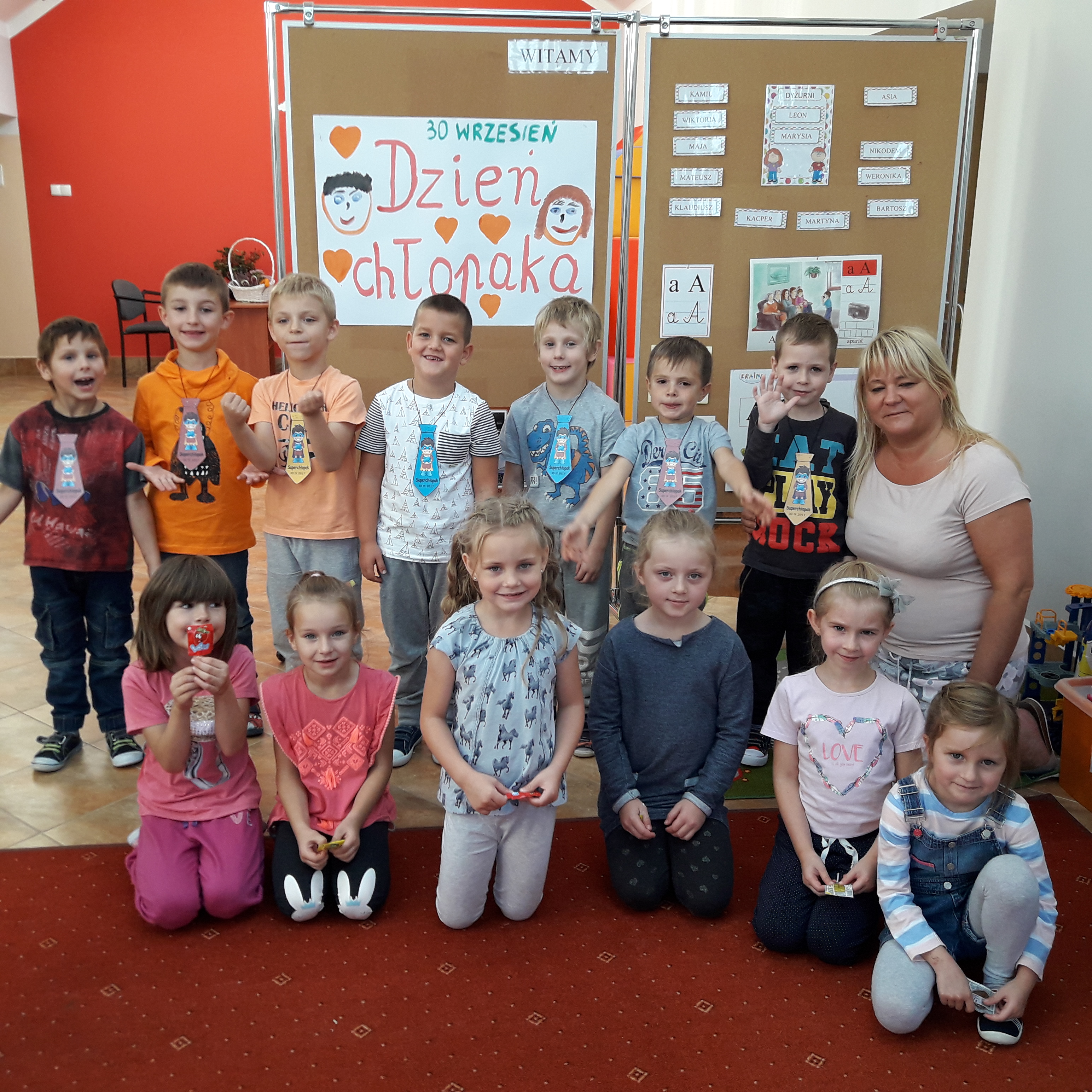Dzisiaj 29.09. 2017r. wszyscy chłopcy z naszego przedszkola świętowali Dzień Chłopaka. W tym dniu we wszystkich grupach dziewczynki wręczały swoim kolegom upominki, dyplomy i smakołyki, składały życzenia, uściskały. W grupie starszaków chłopcy wypili Eliksir Uśmiechu, więc radość, uśmiech i szczęście nie opuszczało ich cały dzień. Nie brakowało także w tym dniu słodkiego poczęstunku dla dziewczynek. We wszystkich grupach był to dzień, pełen wrażeń, atrakcji, radości i dobrej zabawy. takie chwile to doskonały sposób na dalsze poznanie i zintegrowanie grupy, ale i całego przedszkola.