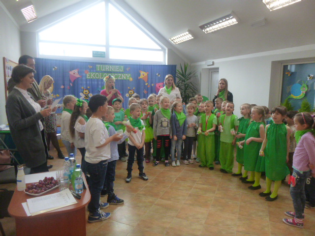 W dniu 26.04.2018r. w naszym przedszkolu odbył się Gminny Turniej Wiedzy Ekologicznej pod hasłem „Przedszkolak mały i duży przyrodzie służy”. Najstarsze przedszkolaki mogły sprawdzić swoją wiedzę z obszaru edukacji ekologicznej. We wspólnej zabawie wzięły udział 5-osobowe drużyny dzieci 6-letnich z przedszkoli i oddziałów przedszkolnych z terenu Gminy Wicko. Każda grupa miała przygotowaną nazwę drużyny i piosenkę ekologiczną. Specjalne powołane 3-osobowe jury w składzie: Pani Mirosława Krzyżanowska-nauczyciel Szkoły Podstawowej w Wicku, Pani Beata Ozimek-pracownik Urzędu Gminy Wicko, Leśnik Wojciech Grudnowski, czuwało nad poprawnością wykonywanych zadań. Uczestnicy wykonywali zadania obrazkowe, układali puzzle, segregowali śmieci, wykonywali instrumenty muzyczne z odpadków itp. Na koniec turnieju wszyscy wykonali razem utwór Majki Jeżowskiej ” Moja Planeta” z wykonanymi instrumentami. Dzieci popisały się ogromną wiedzą, dlatego w turnieju nie było przegranych i wszystkie dzieci otrzymały nagrody, każda placówka upominek i Nagrodę Wójta Gminy Wicko o wartości 250 zł, a nauczyciele i jury podziękowanie. Wspólną zabawę zakończyliśmy słodkim poczęstunkiem. Gratulujemy i życzymy dalszych sukcesów!