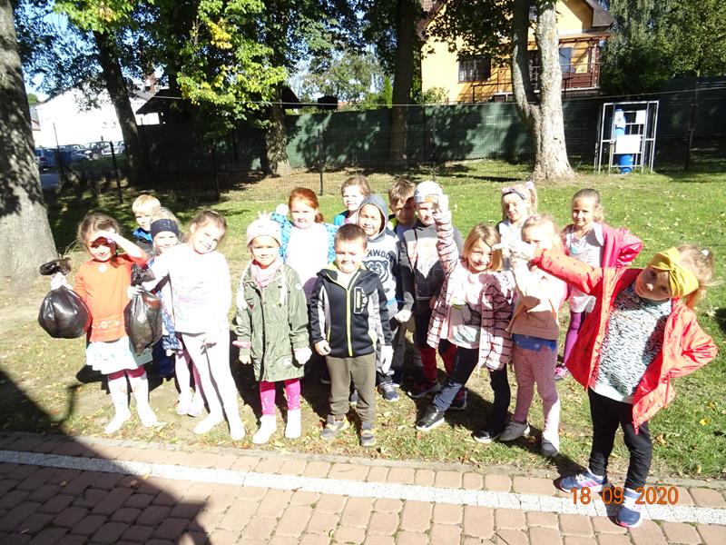 Nasze przedszkolaki zaopatrzone w rękawice i worki również zaangażowały się w tę akcję w miniony piątek (18.09. 2020). Dzieci, ze względu na sytuację pandemii COVID-19, z zachowaniem zasad higieny i bezpieczeństwa chętnie pomagały w sprzątaniu ogrodu przedszkolnego oraz przedszkolnego placu zabaw, gdzie zebrały kilka worków śmieci. Dzięki temu wokół przedszkola zrobiło się czysto i przyjemnie. Nagrodą za troskę i włożony wysiłek dzieci była zabawa na osiedlowym placu zabaw.