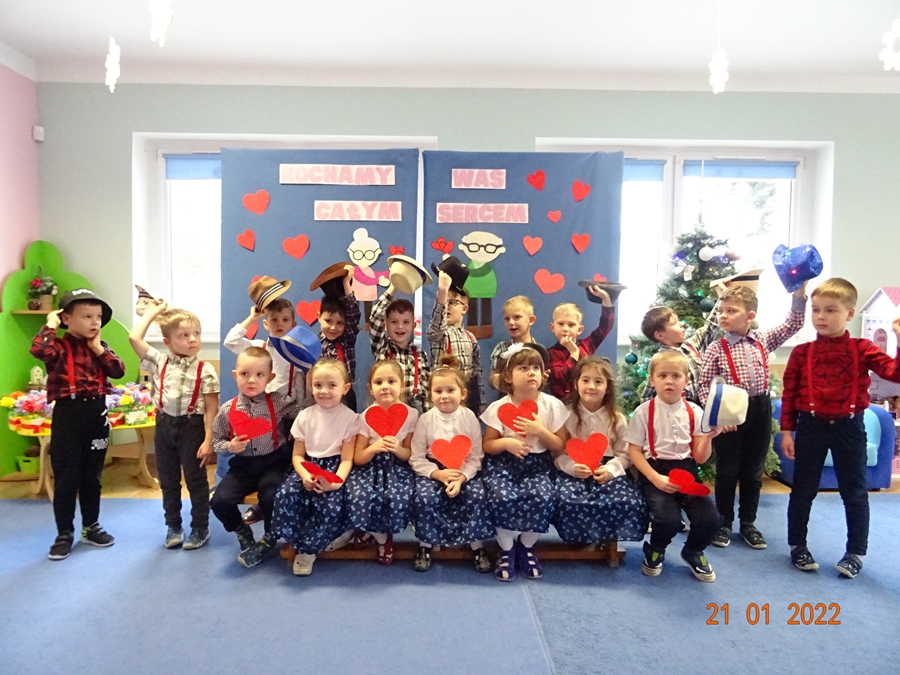 Babcia i Dziadek to słowa, które każdemu dziecku kojarzą się z ciepłem, miłością i wszystkim, co dobre. 21. 01. 2022 r. w naszym przedszkolu wnuki i wnuczęta również przygotowały upominki i niespodzianki dla swoich dziadków. Niestety, w kolejnym roku nie mogliśmy gościć dziadków w naszych placówkach pomimo, iż święto to na stałe wpisało się do kalendarza przedszkolnych uroczystości, gdyż koronawirus w znacznym stopniu ograniczył nasze życie oraz wzajemne kontakty. Doświadczenia te pozwoliły nam jeszcze bardziej docenić, jak wielkim skarbem jest babcia i dziadek. Świat się zmienia, ale nie zmienia się jedno – miłość babci i dziadka, za którą dzieci serdecznie chciały podziękować. Wnuczęta uczciły to święto składając dziadkom życzenia, recytując wiersze, śpiewając piosenki, przygotowały laurki oraz upominki. Dla dziadków nagrane zostały filmy z uroczystości na naszym Facebook’u i You Tube. KOCHANI DZIADKOWIE- JESZCZE RAZ WSZYSTKIEGO NAJLEPSZEGO !!! I miłego oglądania!